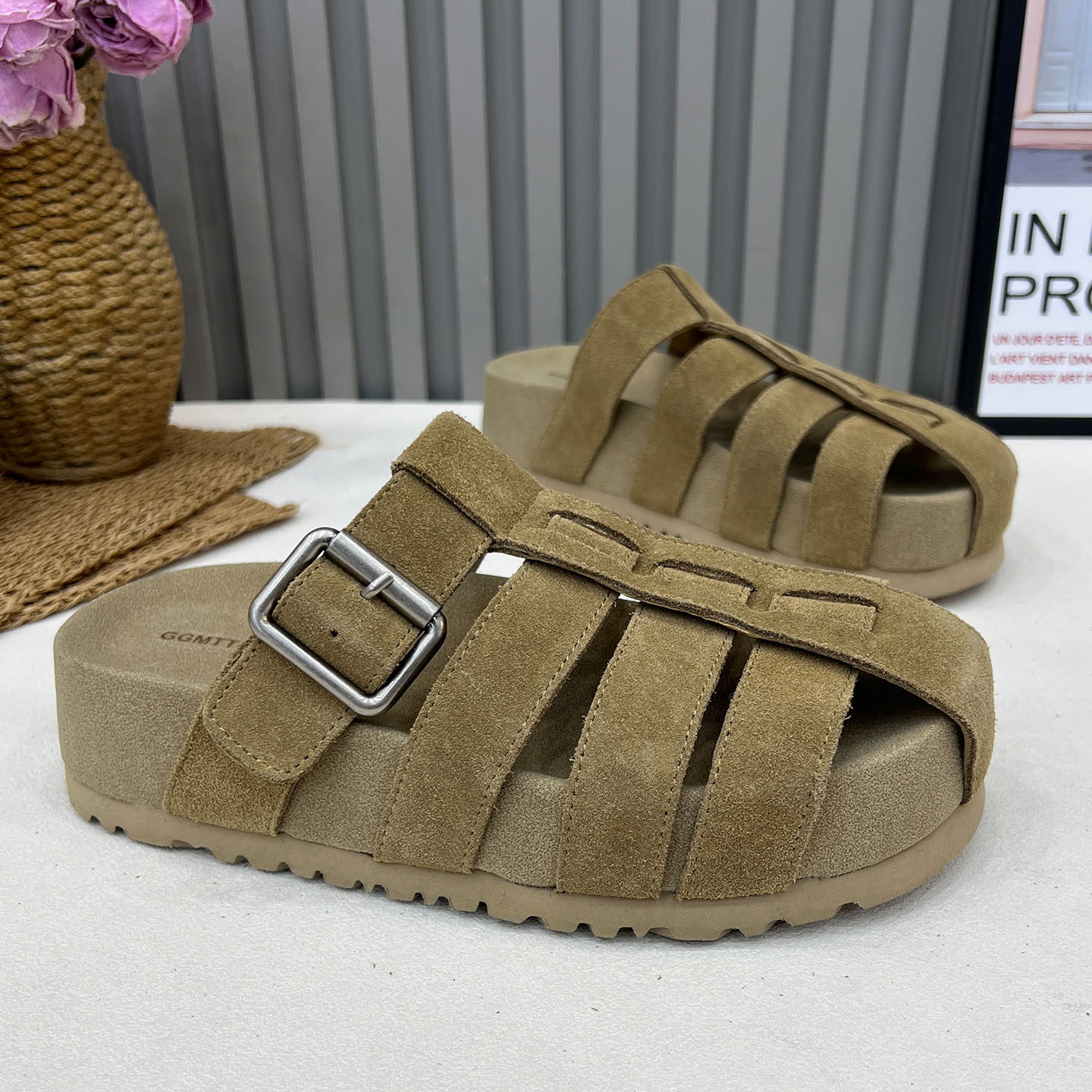复古厚底穆勒鞋女2026春夏新款真皮包头半拖松糕底一脚蹬休闲拖鞋