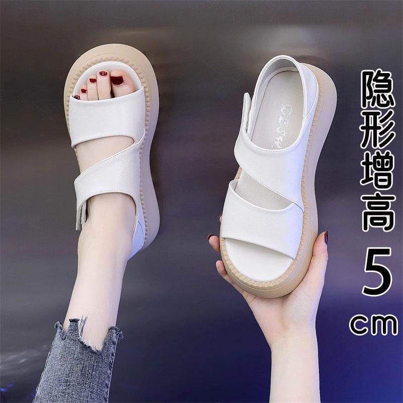 香港真皮包跟凉鞋女夏季外穿2025年新款魔术贴厚底增高沙滩罗马鞋