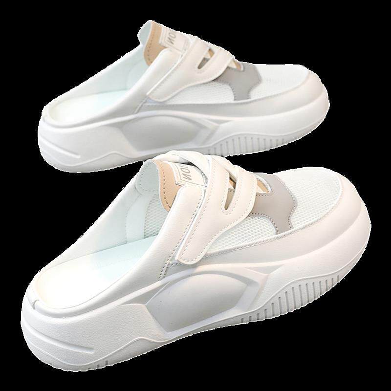 真皮包头半拖鞋女2025年新款夏季外穿一脚蹬防滑厚底小白运动凉鞋