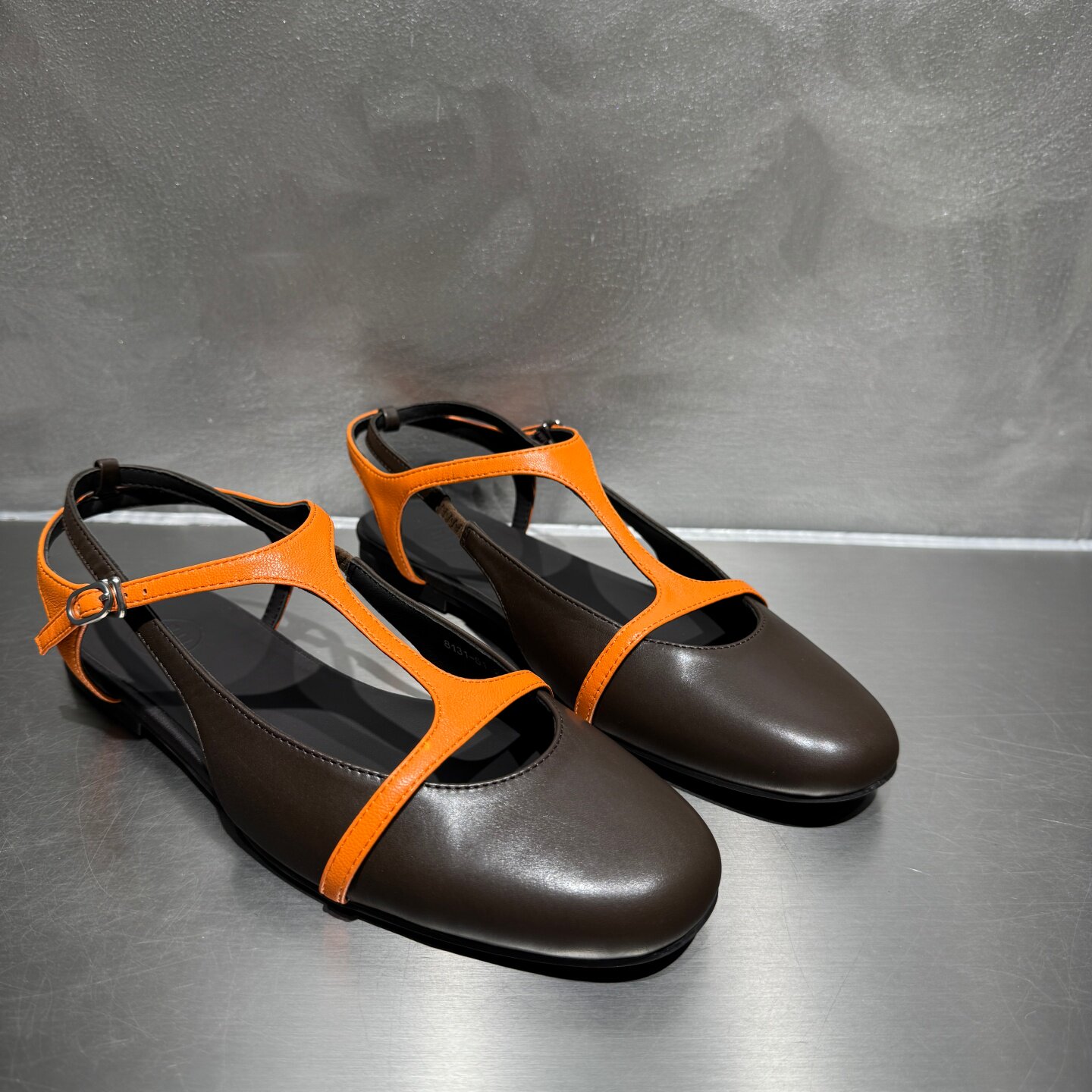 轻奢自留2024新款~真皮包头低跟凉鞋女夏拼色粗跟浅口后空高跟鞋