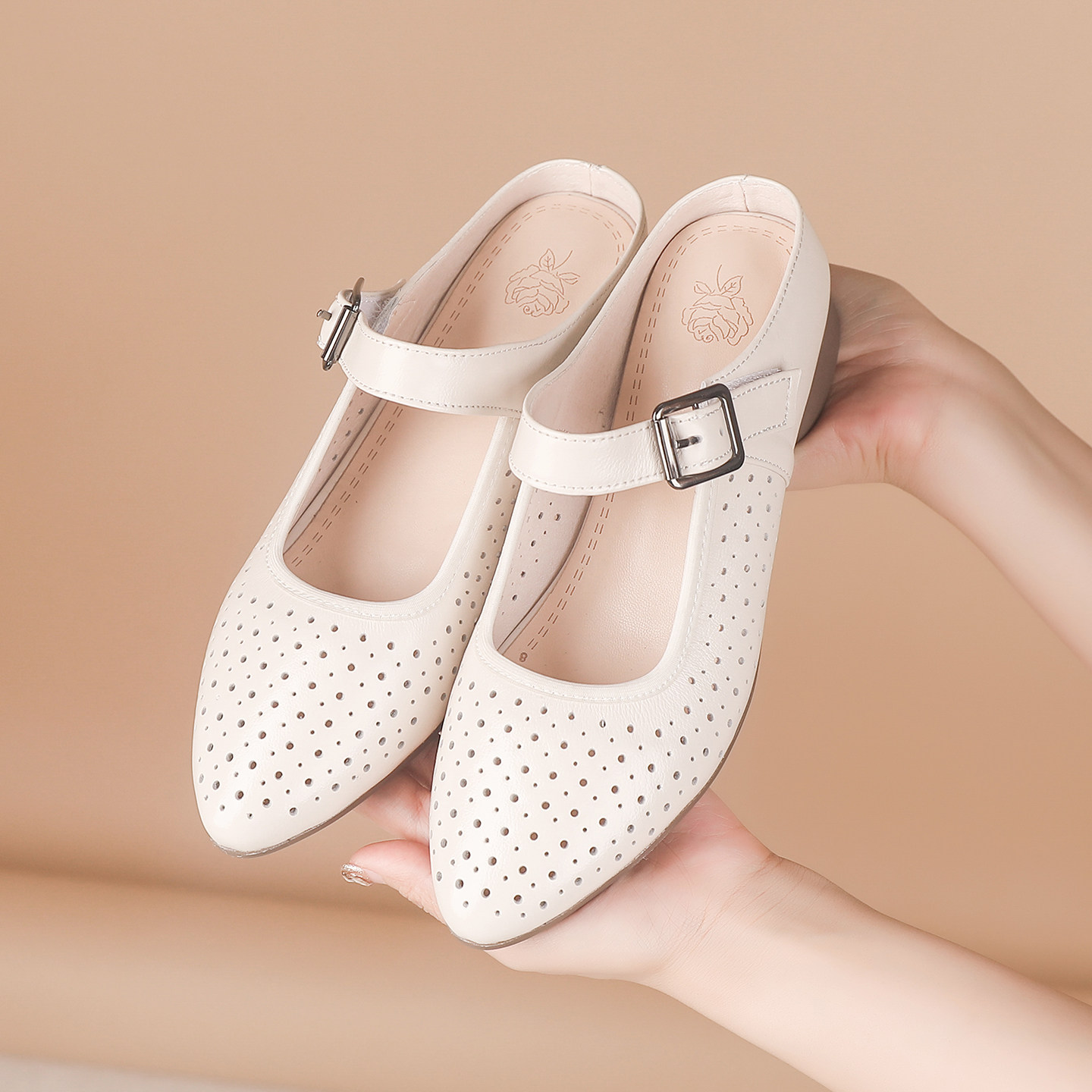 金利来女鞋2026夏季新款中跟粗跟包头凉鞋方头真皮包跟中空单鞋SJ