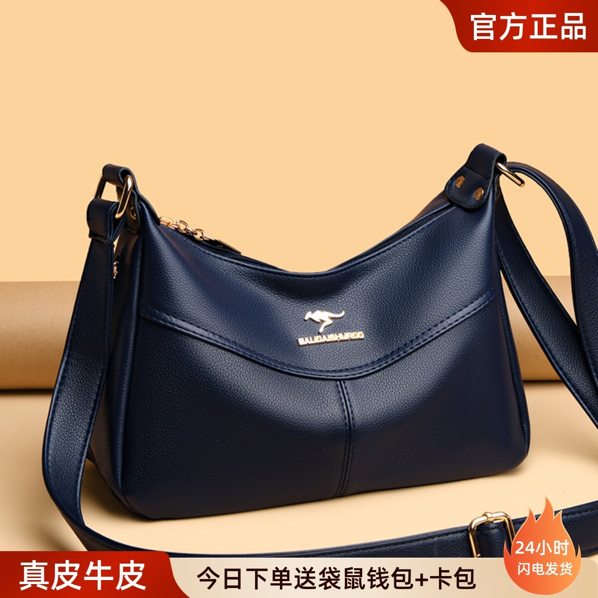 袋鼠正品手提包女士真皮包包2025新款时尚百搭单肩斜挎妈妈包牛皮