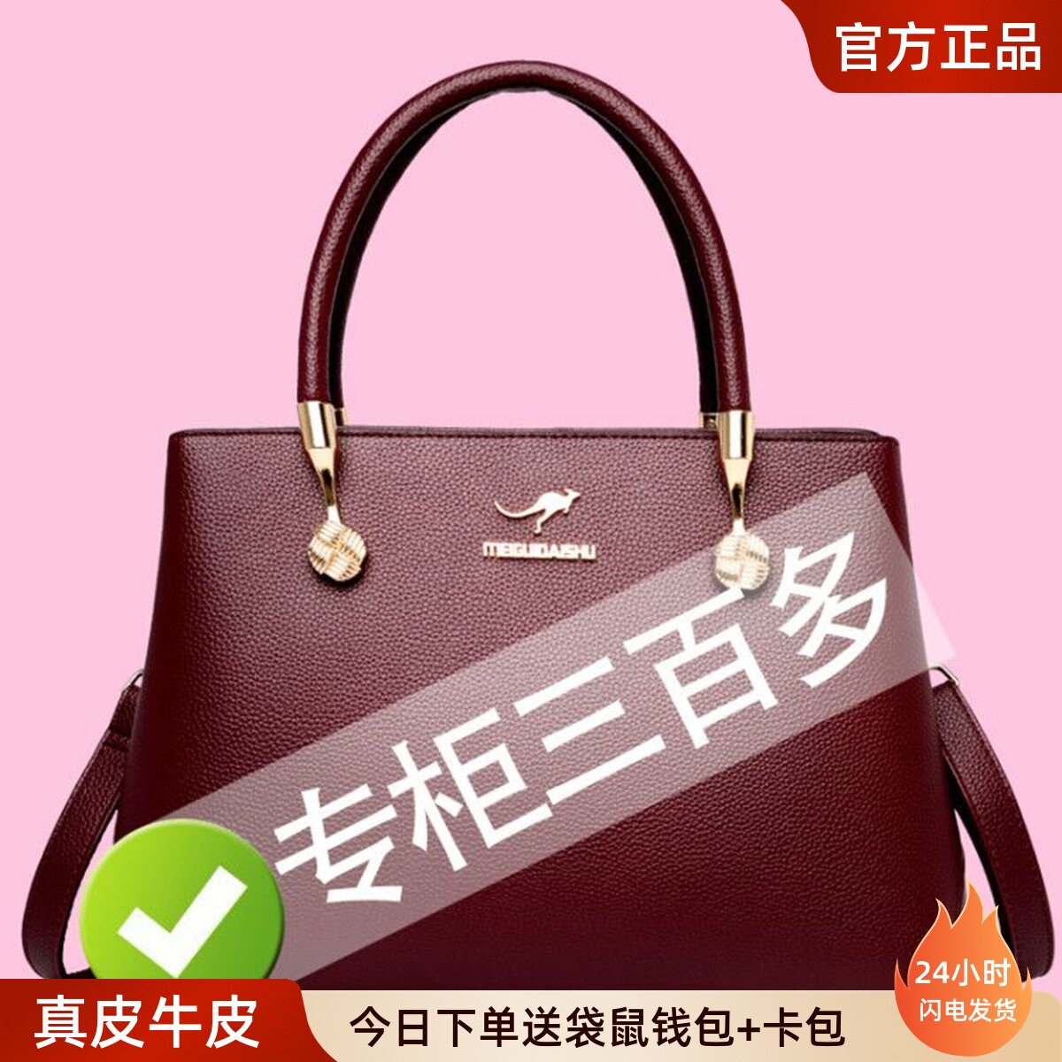 袋鼠专柜女包真皮手提包2025新款大气中年妈妈包女士斜挎包牛皮包