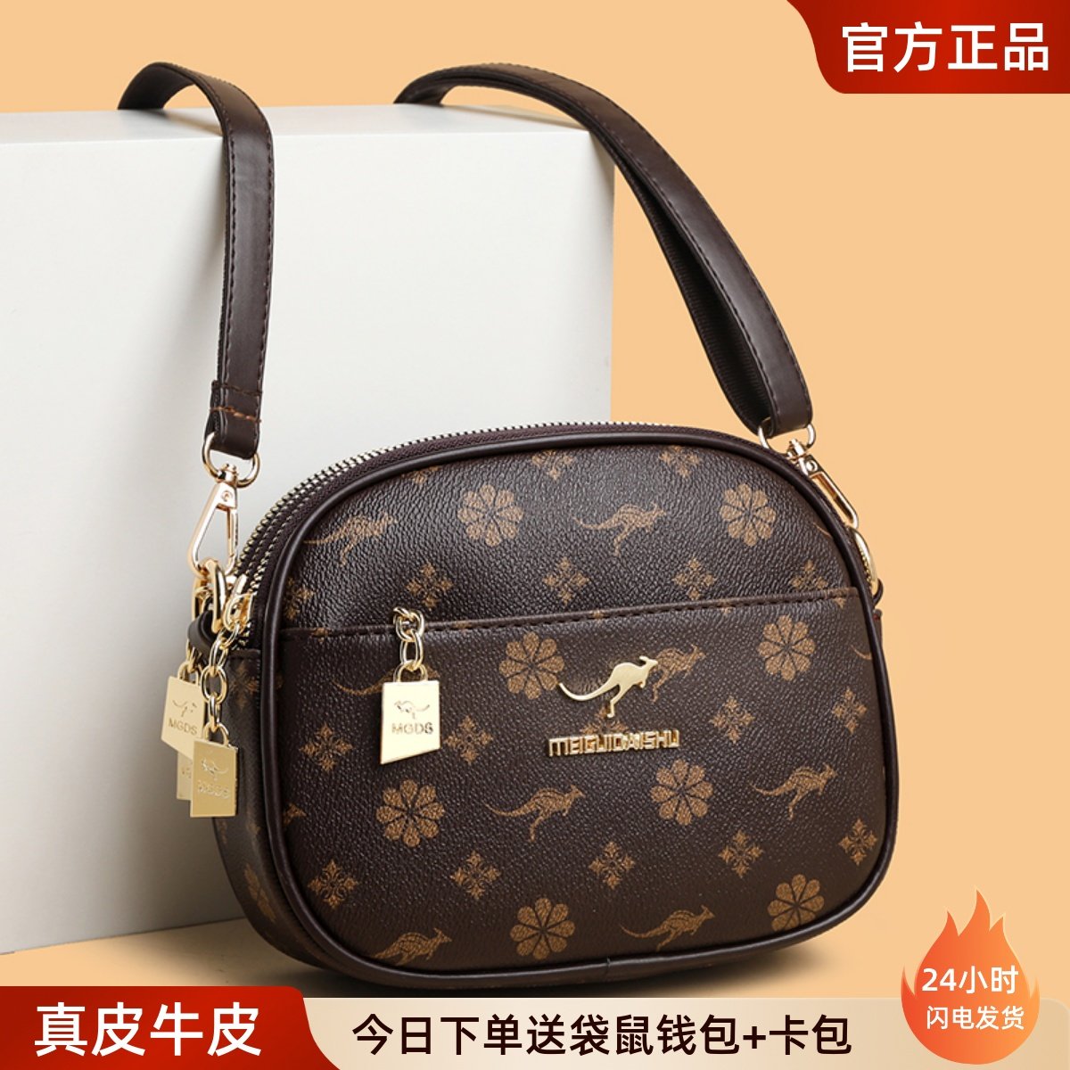 袋鼠真皮包包女2025新款小圆包百搭中年妈妈包时尚单肩斜挎包小包