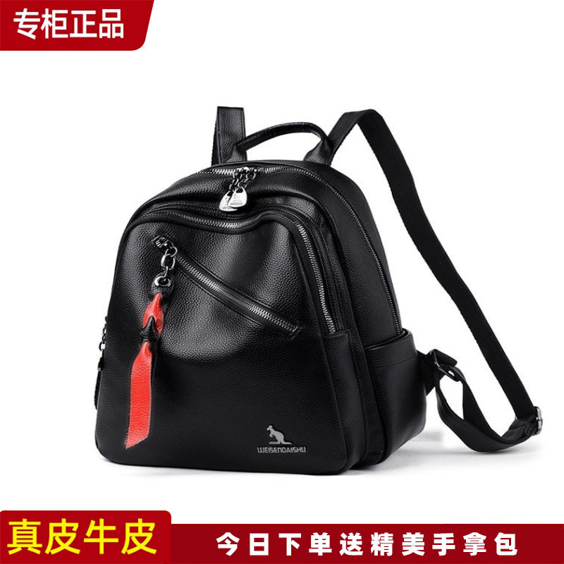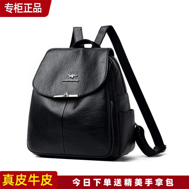 正品袋鼠女包休闲双肩包软皮新款牛皮旅游背包2024真皮包大容量潮
