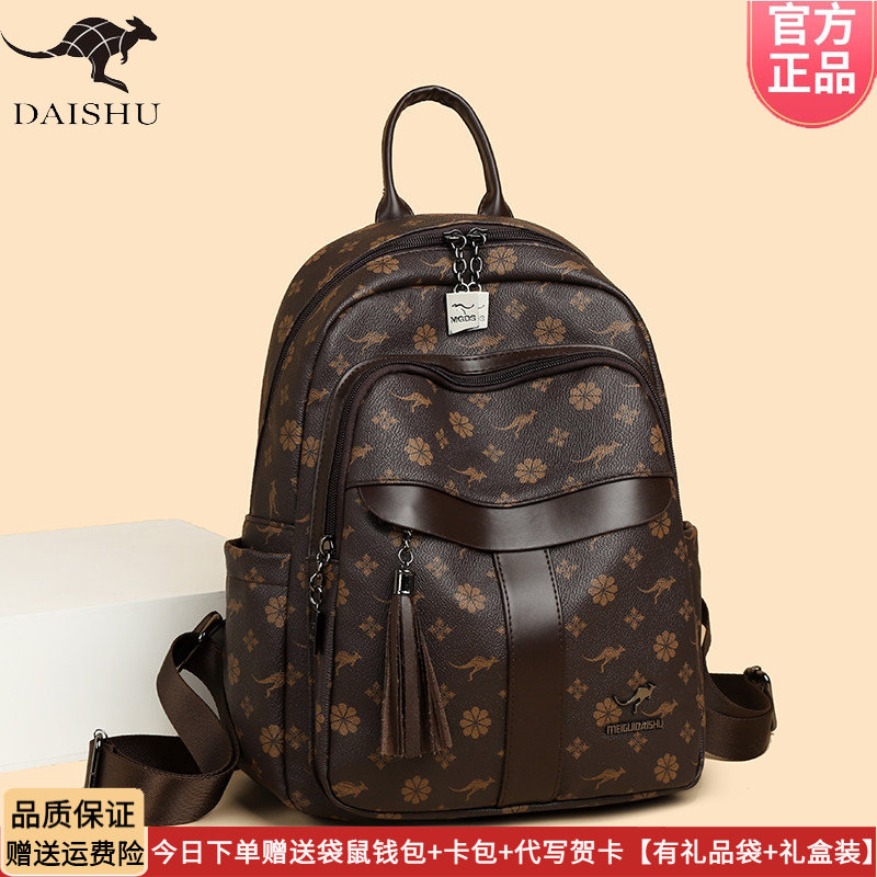 正品袋鼠双肩包女皮包2026新款时尚妈妈日常逛街上班旅行背包软皮