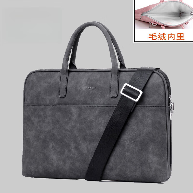 【精选直发】时尚手提公文包pu皮单肩电脑包141617寸大容量笔记本 毛绒版-黑色 13.3-14.1寸