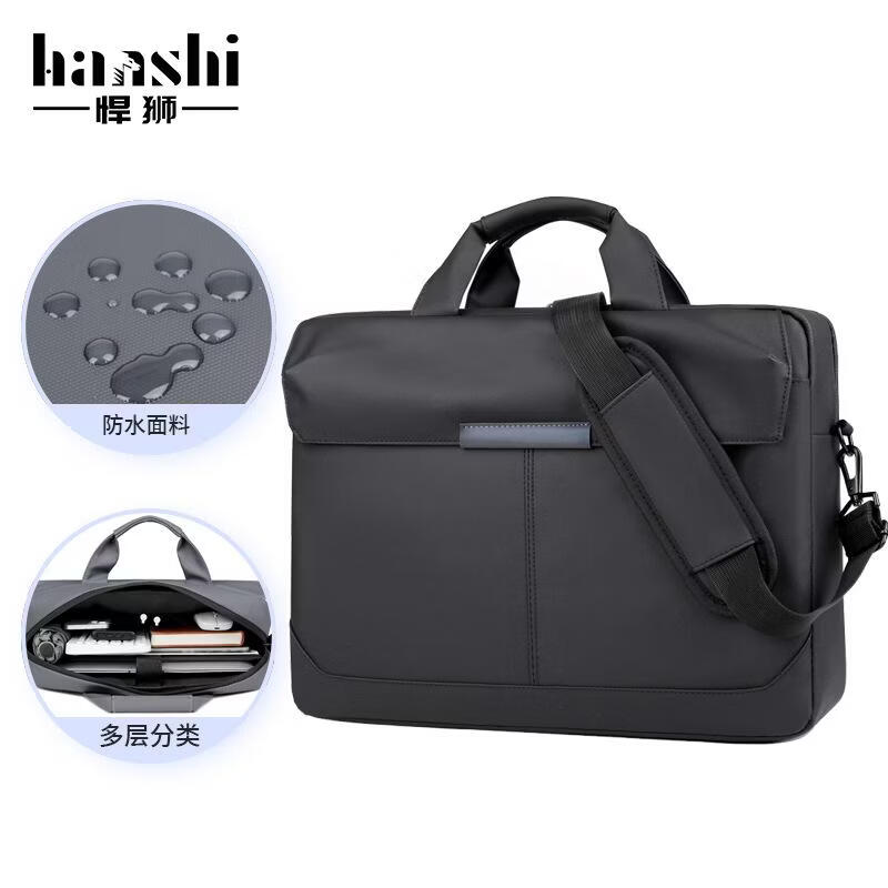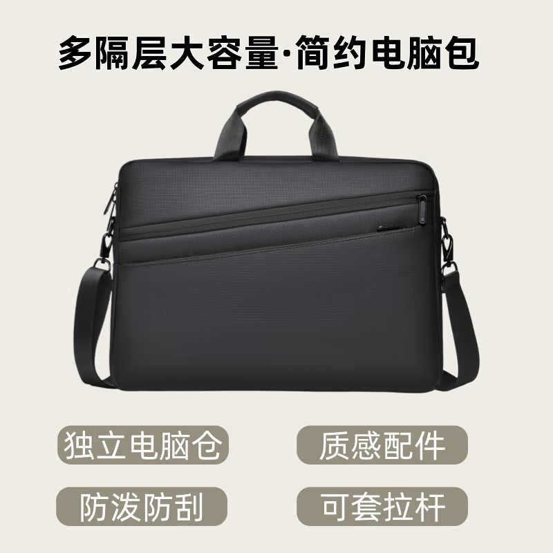 时尚男士电脑包高级感休闲女手提包通勤单肩斜挎包商务挡水公文包 1052黑色 15.6