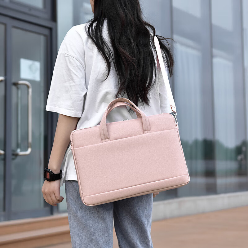 【严选百货】新款时尚笔记本电脑包手提包男女商务公文包单肩包斜 小号粉色