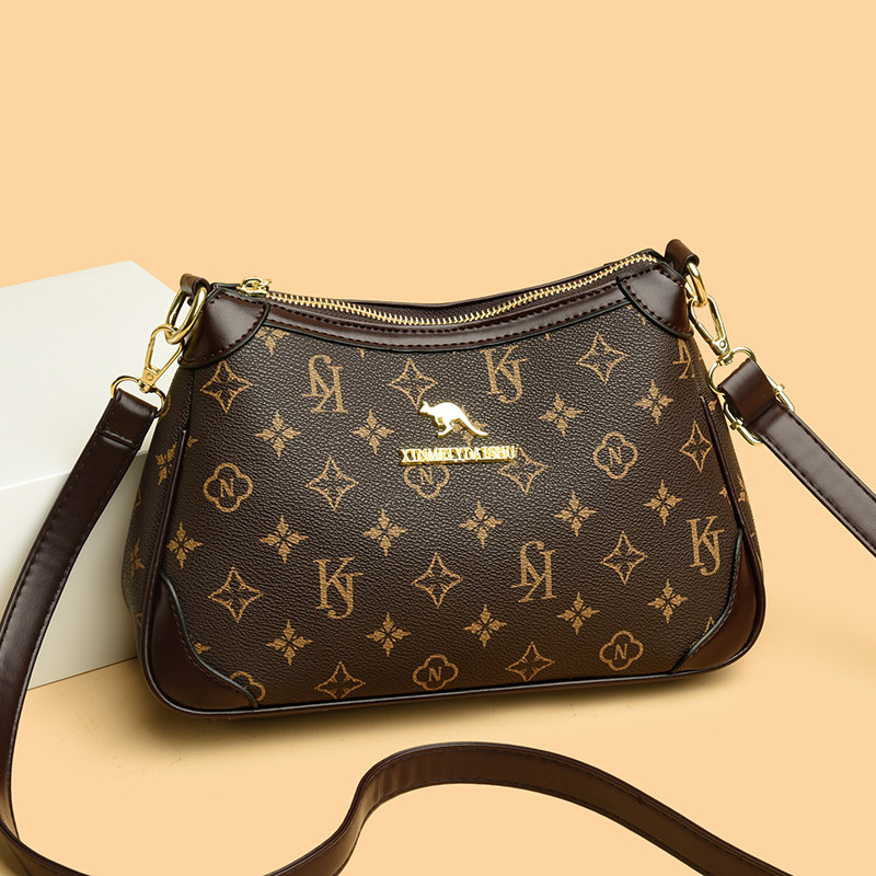 袋鼠斜挎包女2025新款四季包包百搭单肩包时尚中年妈妈包皮包软皮