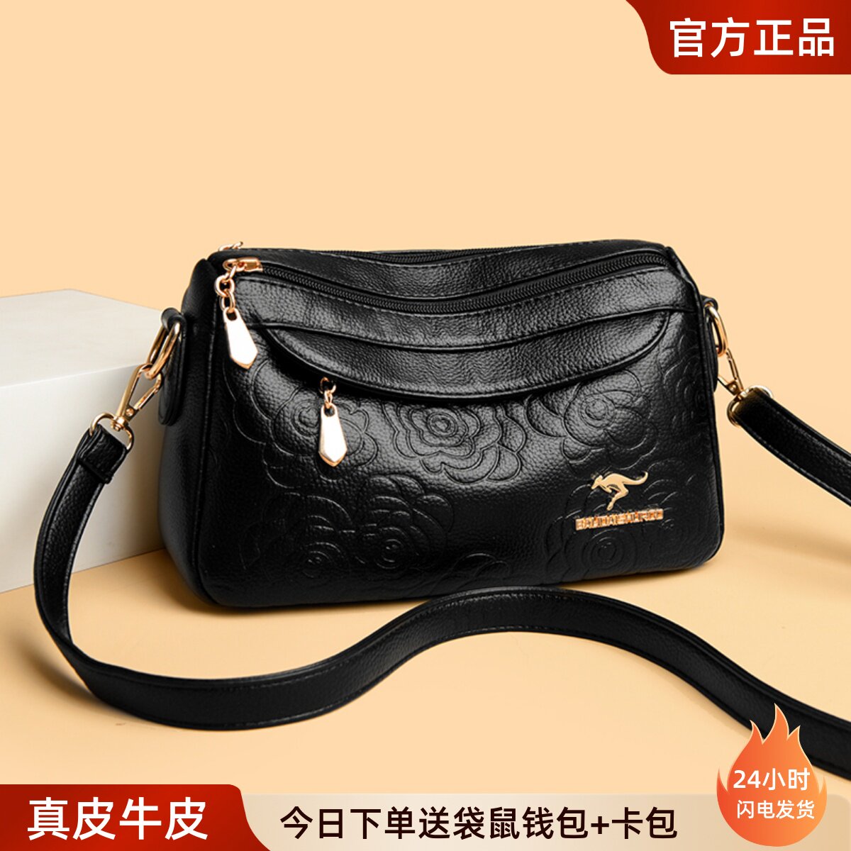 袋鼠真皮包包女2025春夏新款牛皮斜挎包时尚软皮妈妈包中年小女包