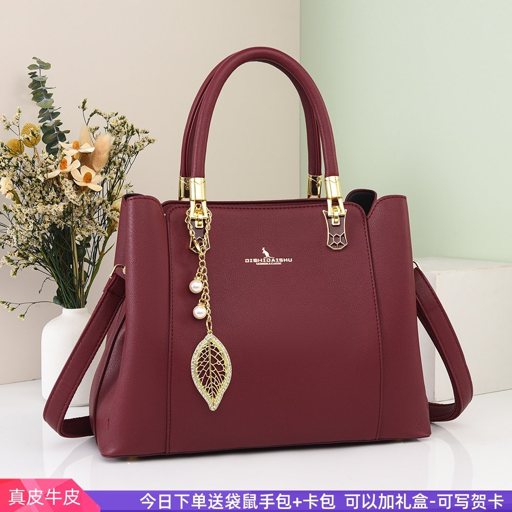 袋鼠品牌女士真皮手提包2025新款时尚妈妈包通勤百搭斜挎牛皮包包