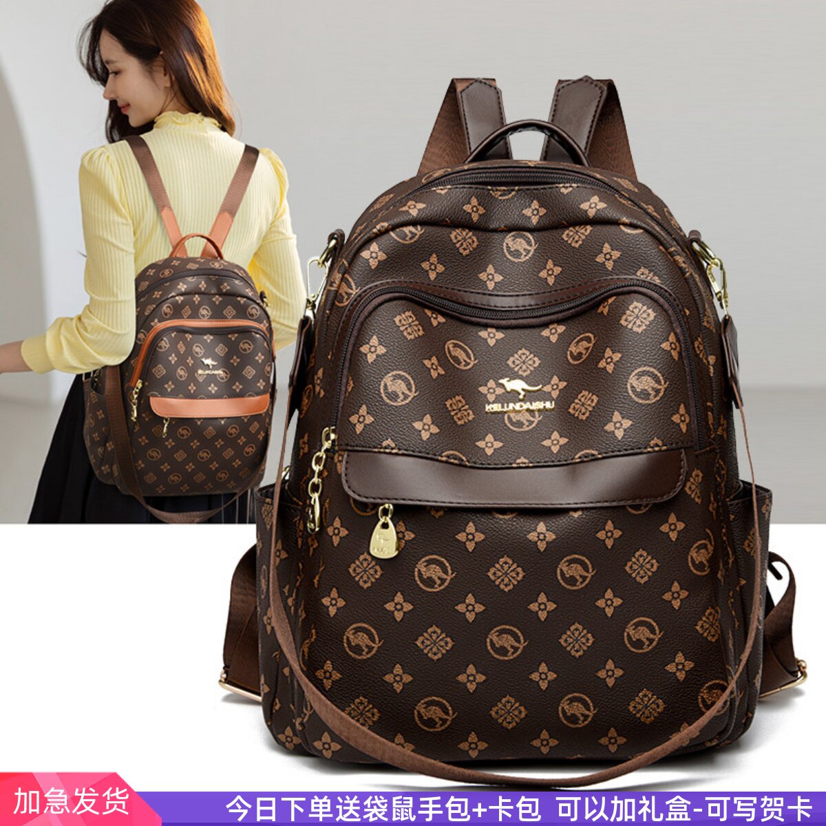 袋鼠双肩包女皮包2026新款时尚大容量女士轻便旅游包中年妈妈背包
