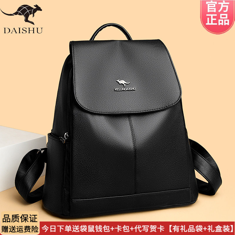 正品袋鼠双肩包女皮包2026新款时尚妈妈日常逛街上班旅行背包软皮