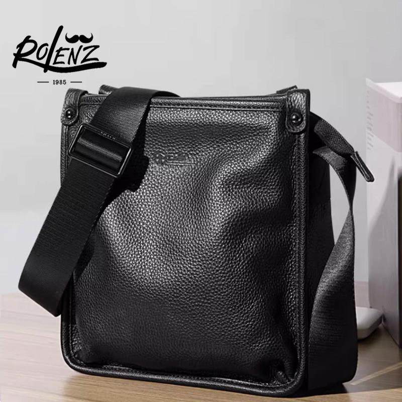 Rolenz经典无障碍奢侈名牌层牛皮包商务休闲男士斜挎包经典便携式