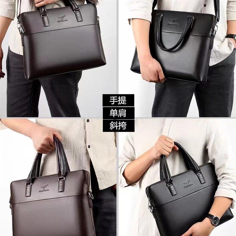 男士手提包商务男士皮包斜挎单肩包男包潮流公文包单横款手拎现货