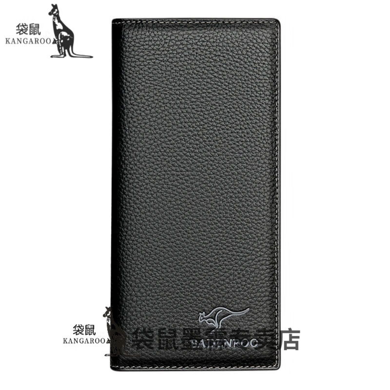 袋鼠钱包男款长款真牛皮男士皮夹子大容量钱卡一体包有拉链皮包送礼 长款黑色