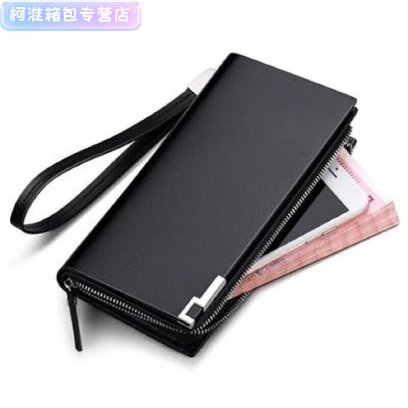 恒岚长款钱包男大容量手包质感拉链手拿包皮夹皮包一体包钱包男款 黑色 拉链搭扣款