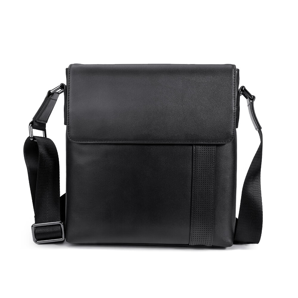 袋鼠(DAISHU)男士包包2025新款时尚男包单肩包斜挎包牛皮包商务小背包 黑色