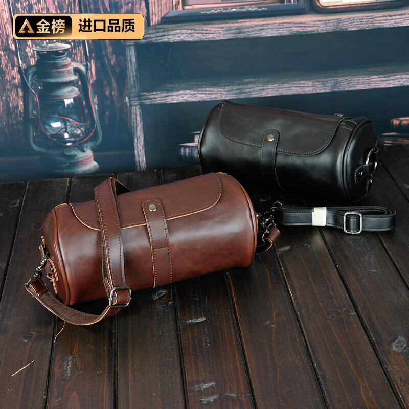 GIOIO日本进口品质复古潮流小皮包男欧美个性男女单肩斜挎小背包圆筒型 黑色