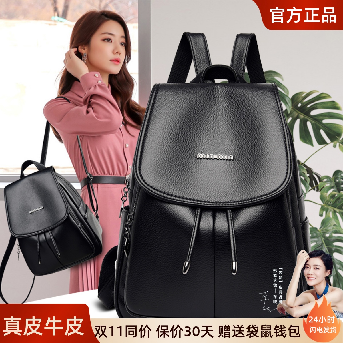 真皮包头层牛皮女包新款纯色双肩包防水女式街头旅游背包单肩手提
