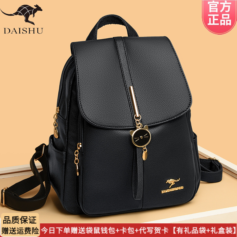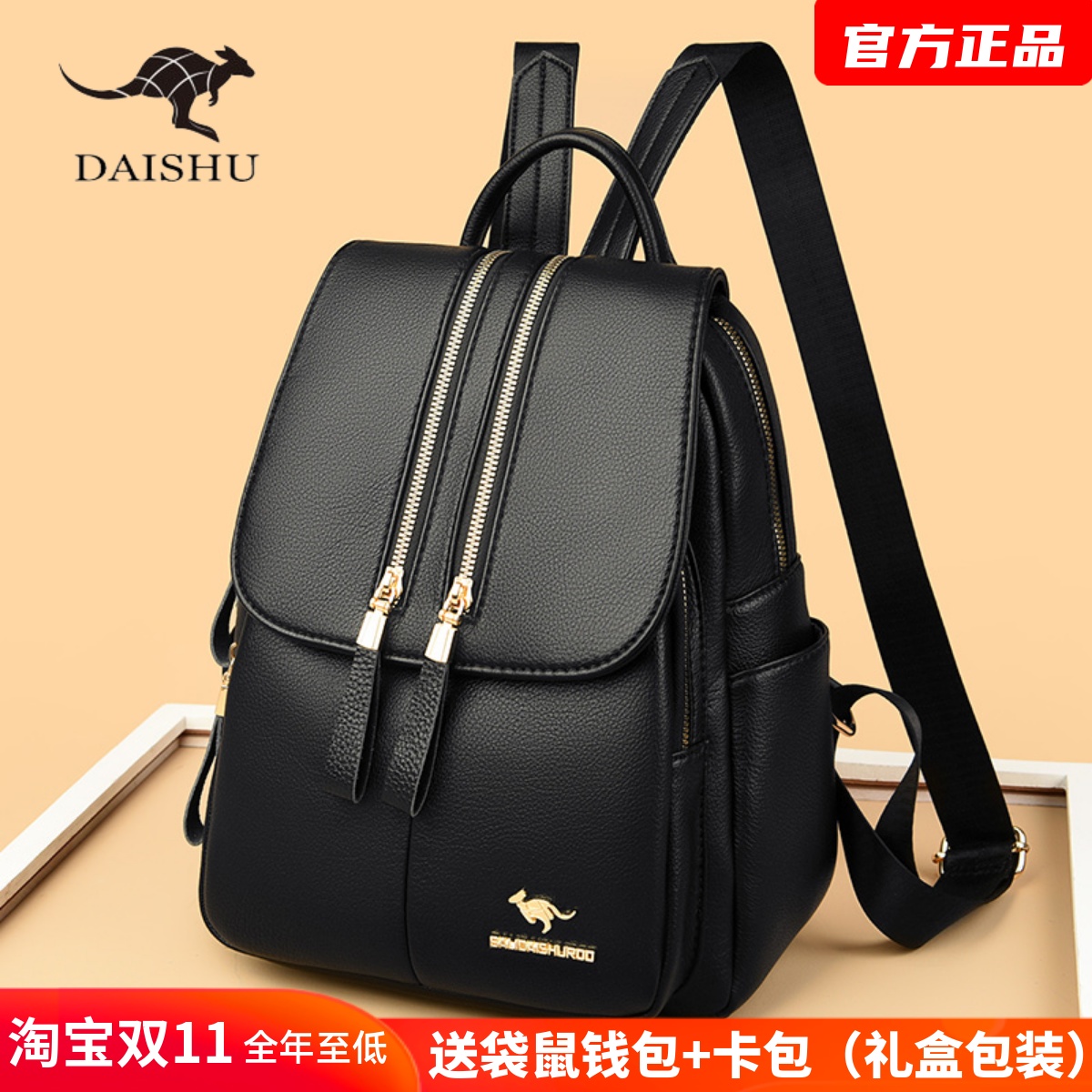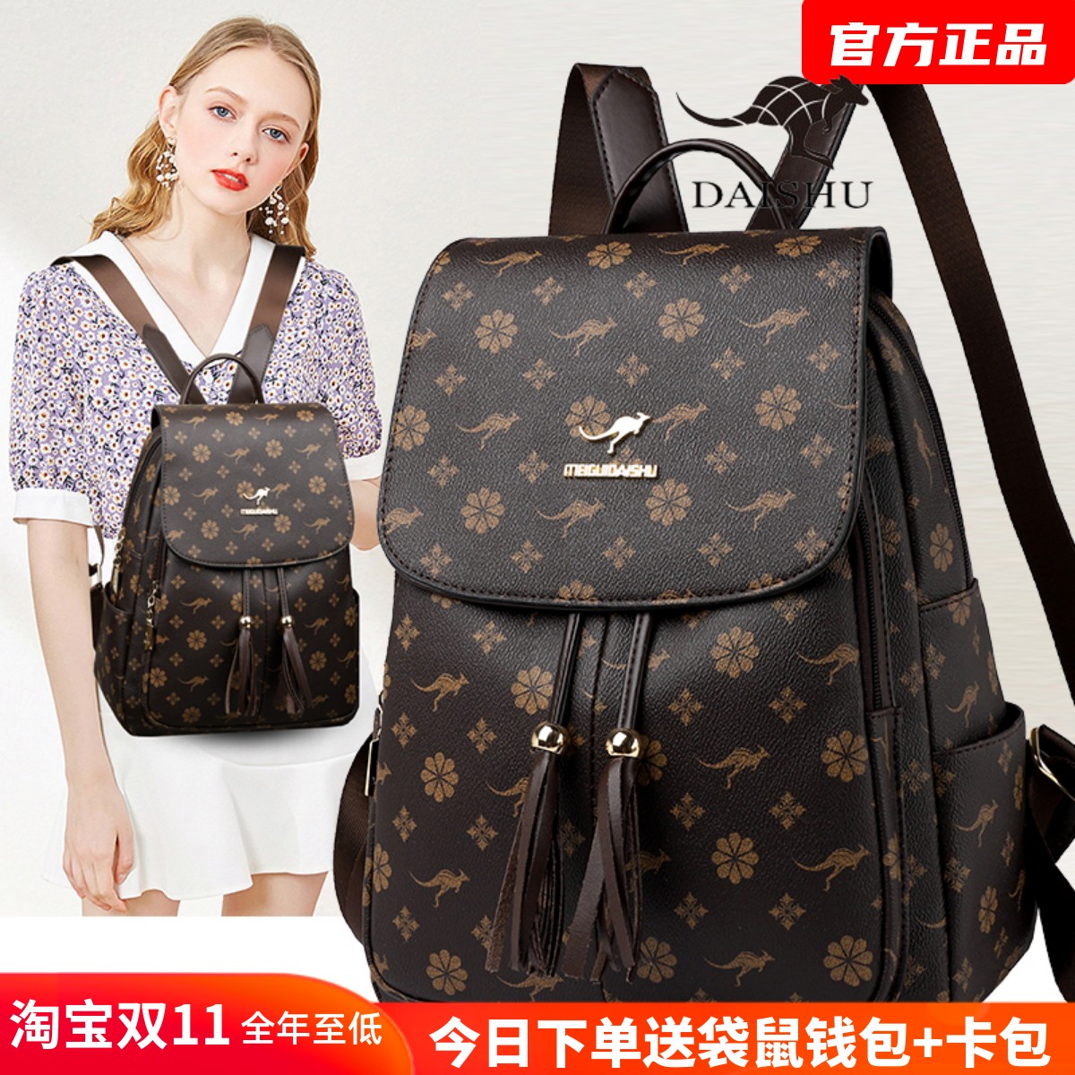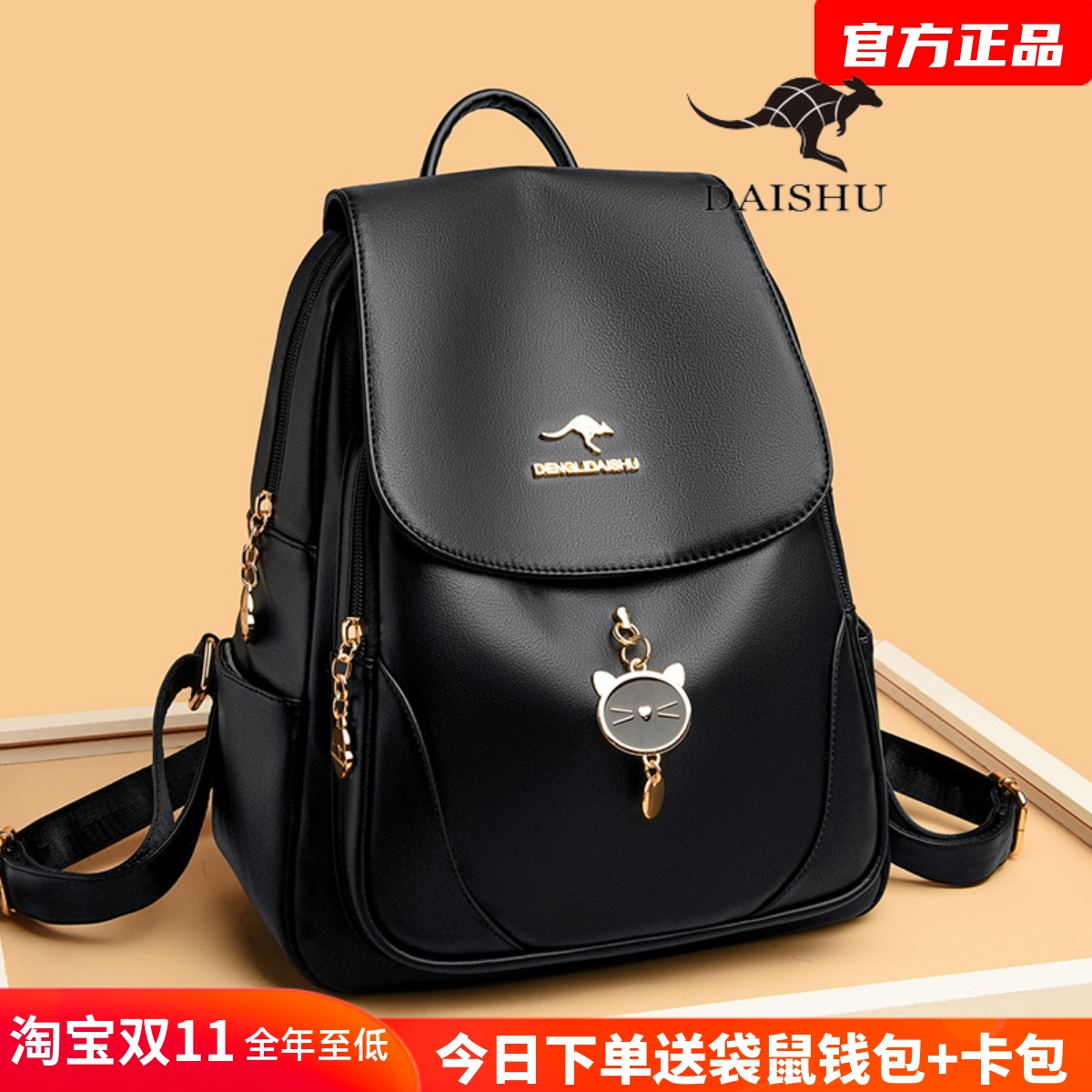 正品袋鼠皮包双肩包女2025新款百搭旅游轻便背包妈妈款大容量背包