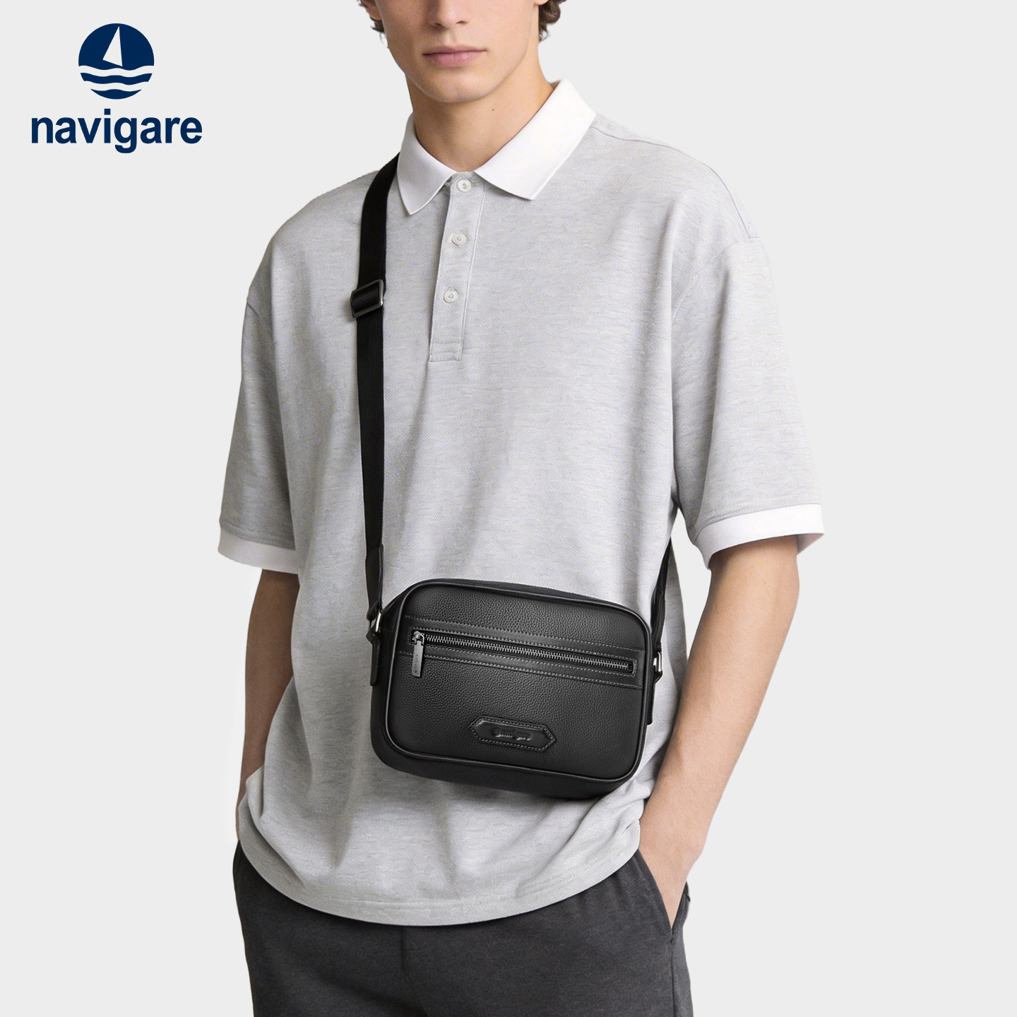 Navigare意大利小帆船2026新款男士真皮斜挎包单肩包通勤休闲皮包