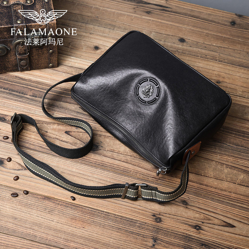 亏本清仓真皮法莱阿玛尼黑色单肩包男士真皮包休闲时尚通勤小背包