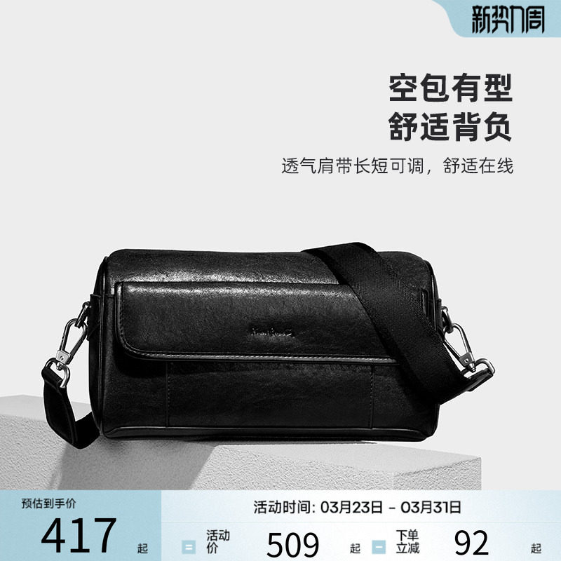 皮尔卡丹男士单肩包商务休闲软皮包新款男包轻便斜挎包百搭邮差包