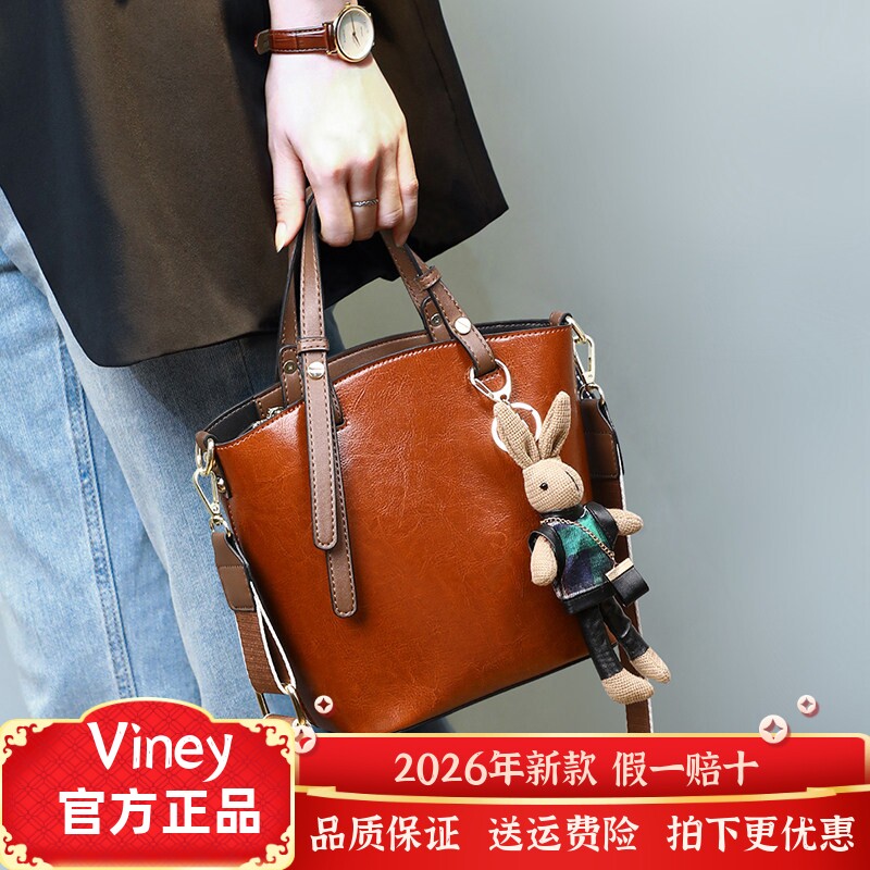 Viney牛皮包包女包大容量水桶包斜挎单肩包轻奢百搭送生日礼物