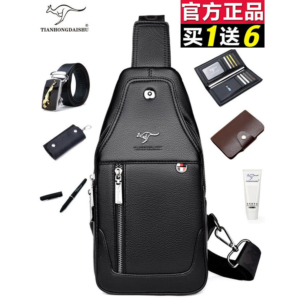 帅桐袋鼠胸包新款平板包真皮男包休闲单肩背包牛皮包小胸前斜挎包
