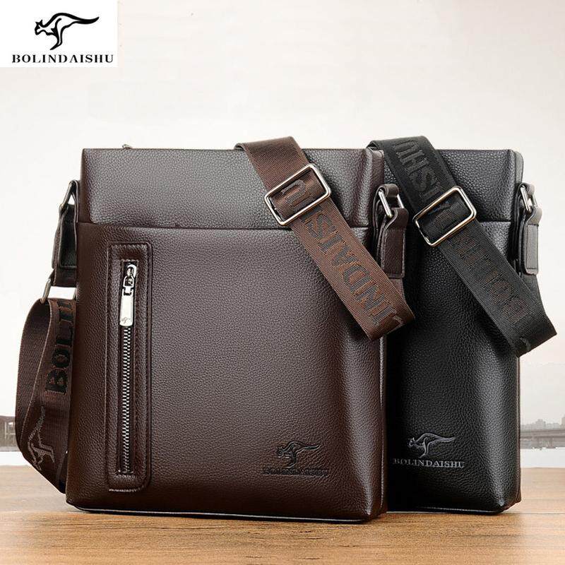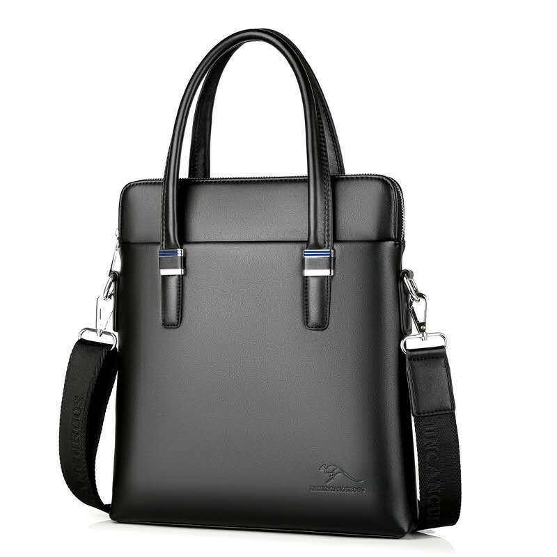 柏林袋鼠单肩包男斜挎休闲皮包竖款时尚潮流黑色小挎包男士商务