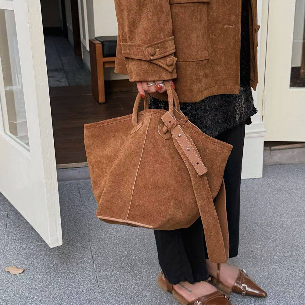 编织包女2026新款麂皮包慵懒风斜挎包女大容量松弛感单肩包通勤包