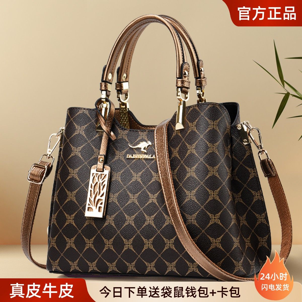 袋鼠品牌正品2025新款大容量真皮包包中年女士手提包轻奢斜挎包