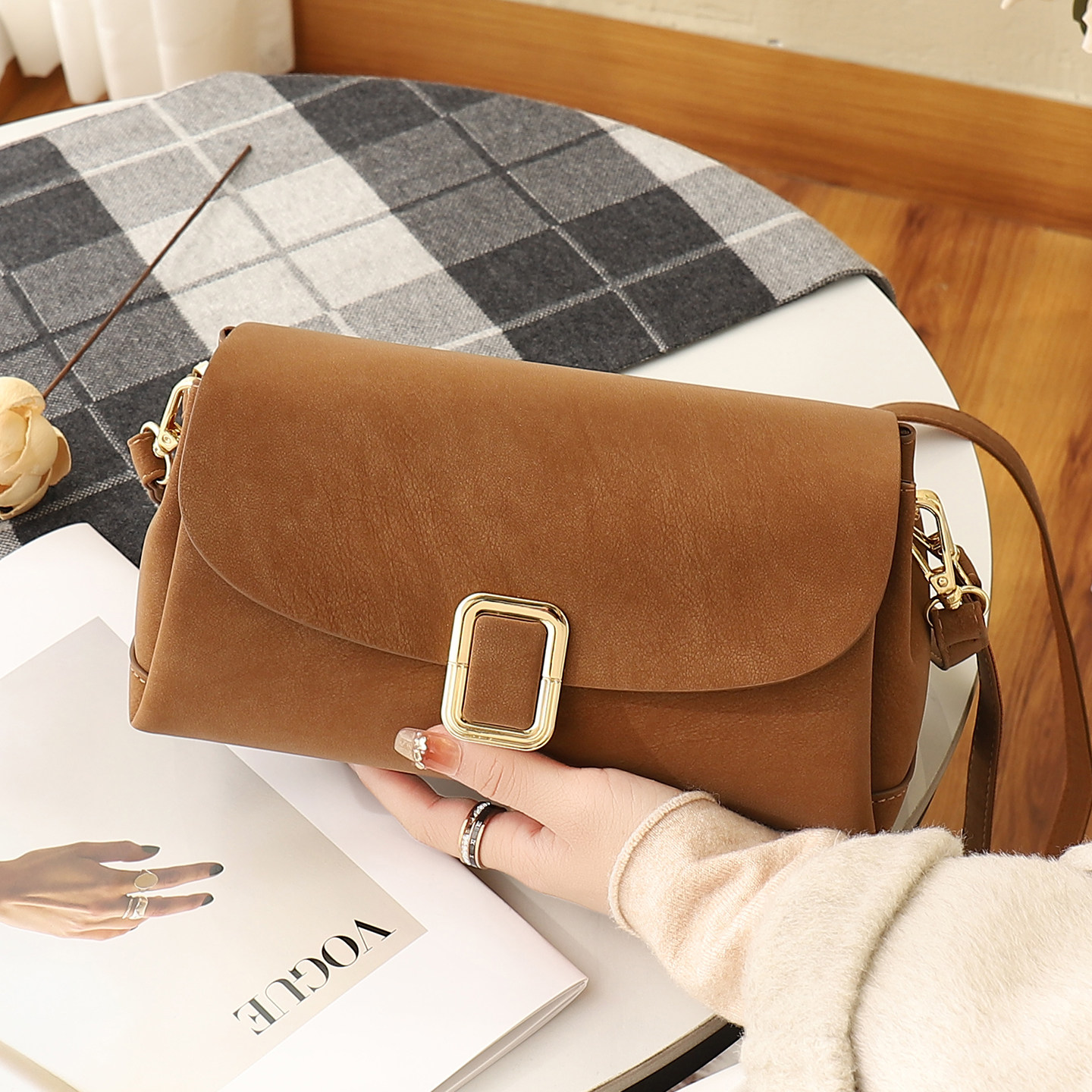 软皮包包女2026新款复古方扣枕头包磨砂圆筒百搭通勤包单肩斜挎包