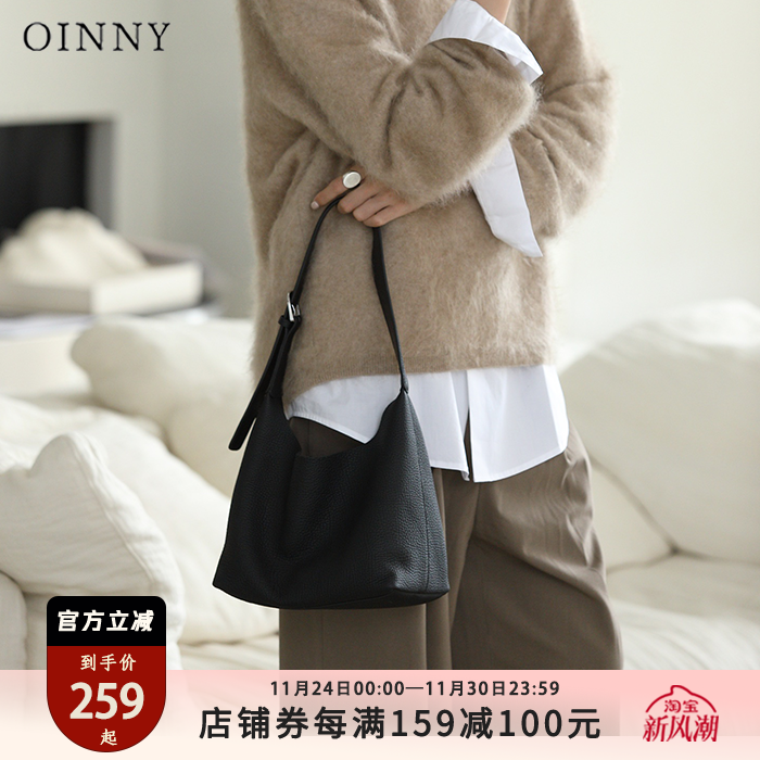【秋冬新款】Oinny小众高级通勤斜挎包包真皮水桶包牛皮包6512