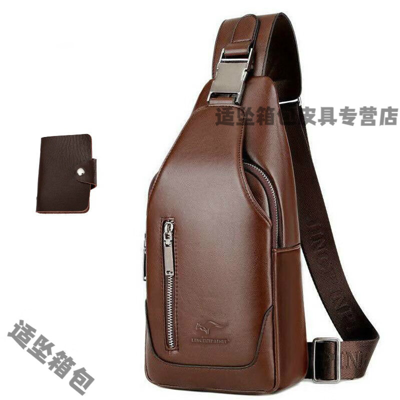 布潮喵新款皮质感男士胸包休闲单肩包斜挎包时尚胸前小背包软皮包 棕色+卡包