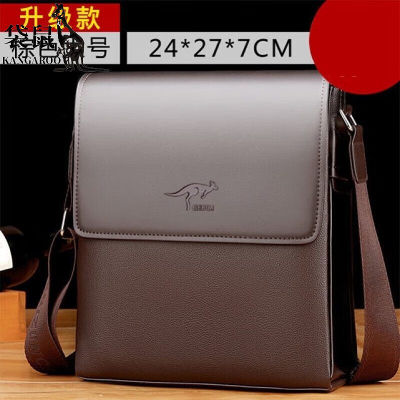 袋鼠新款新年男士皮带商务时尚休闲斜挎包男款皮包商务公文包加伯包 H70-70001-*升级版大号棕色 单包无