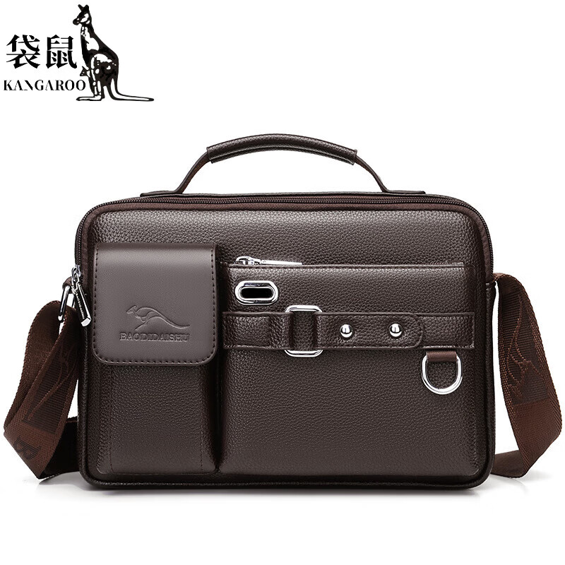 袋鼠男士单肩包2024新款时尚斜挎包大容量背包小包包复古皮包肩包挎包 大号棕色