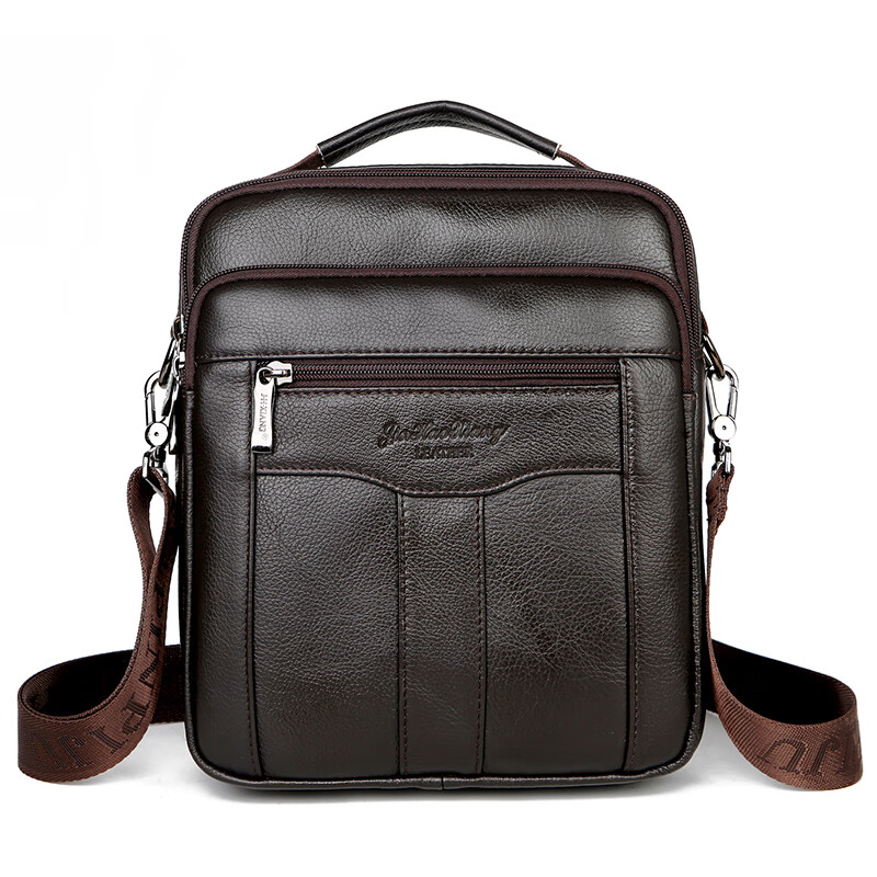袋鼠真皮男包单肩包男士背包男斜跨大容量手提牛皮包商务中年包 棕色大号竖款