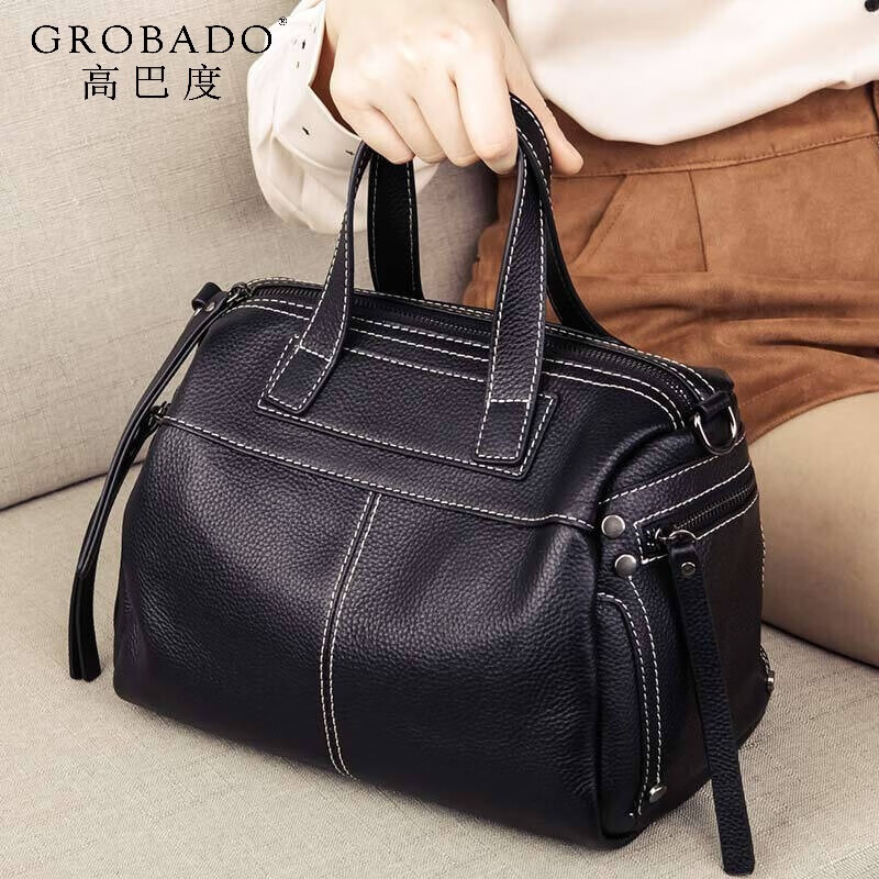 高巴度(GORBADO)真皮包包女2025新款时尚单肩波士顿枕头包女情人节个性软皮手提包 黑色