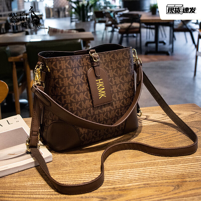 袋鼠品牌真皮包包女斜挎包2025七夕气质高级手提包单肩时尚水桶包 咖色