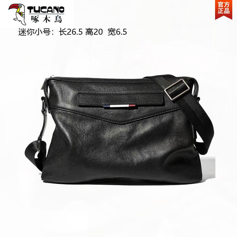 啄木鸟(TUCANO)单肩包男真皮男士包包头层牛皮包大容量休闲商务背包男包斜挎包潮 黑色迷你小号