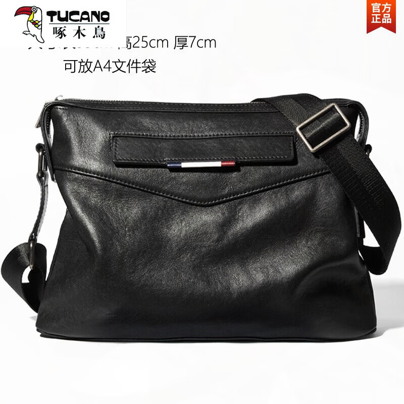 啄木鸟(TUCANO)单肩包男真皮男士包包头层牛皮包大容量休闲商务背包男包斜挎包潮 黑色大号