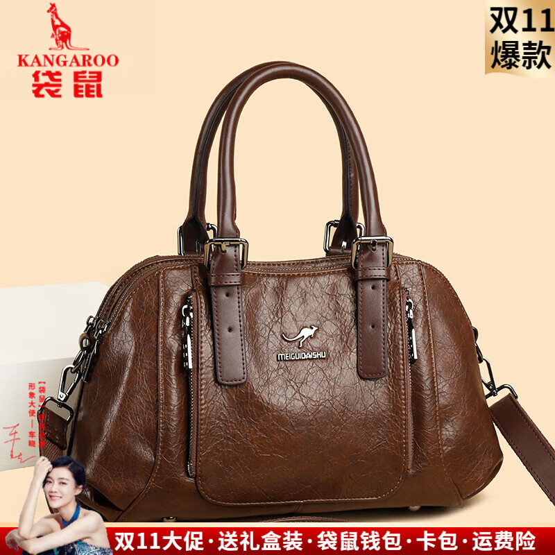 萱羽袋鼠女包2025新款中年手提包真皮包包女妈妈包百搭牛皮斜挎包