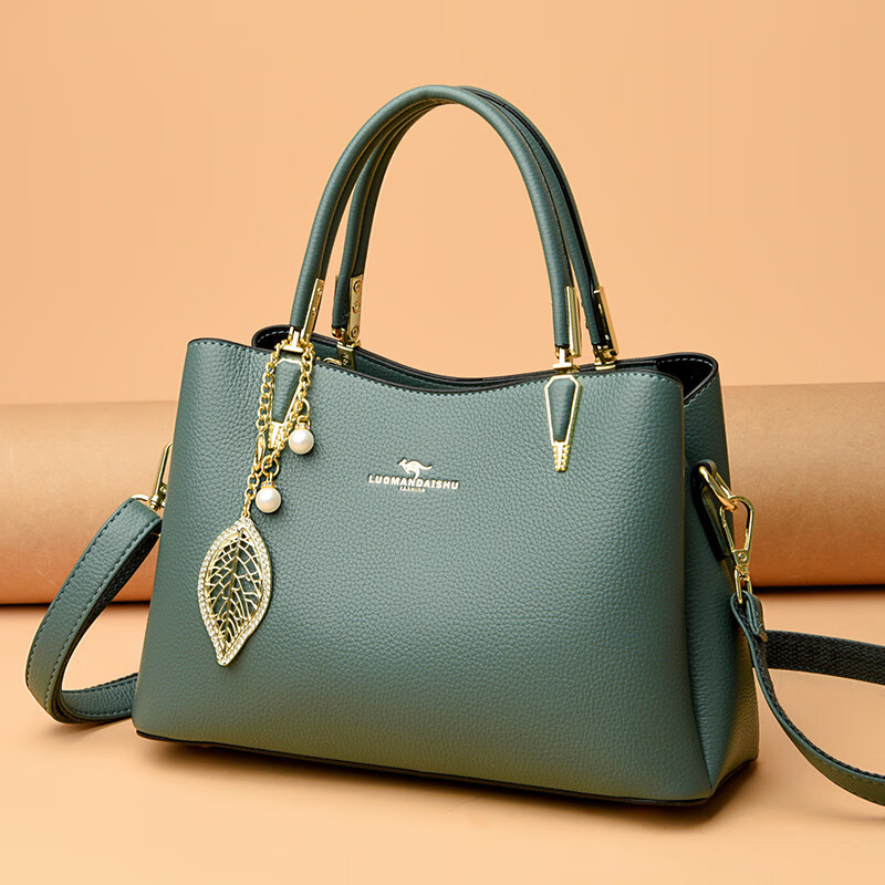 手提包女包送老婆生日礼物女士真皮包中年妈妈包大容量单肩斜挎包 绿色-贷鼠
