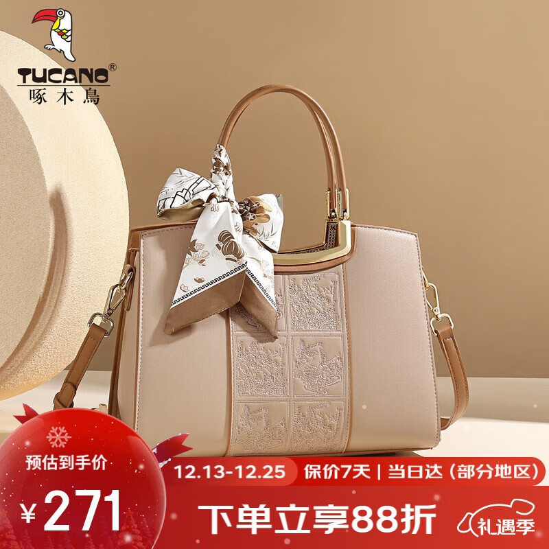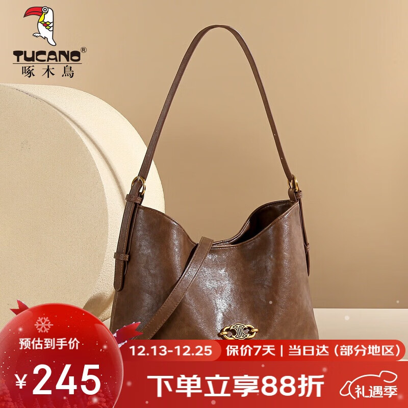 啄木鸟(TUCANO)牛皮包包女包单肩斜挎包妈妈包轻奢品牌百搭高级感圣诞节新年礼物