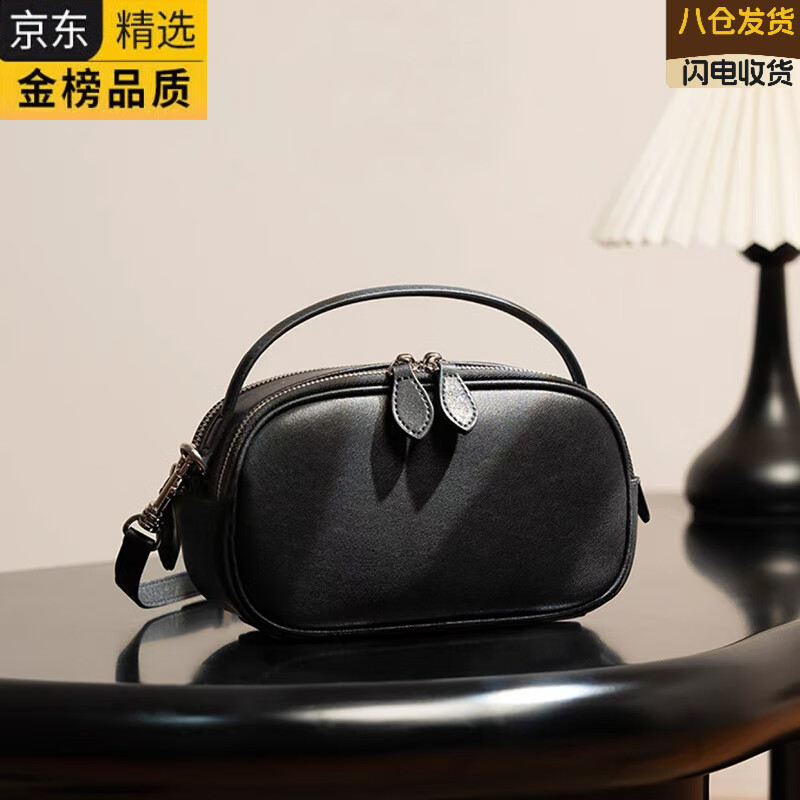 GIOIO日本进口名牌真皮包包女相机包斜挎包手提女士单肩包高端时尚品牌 黑色【真皮】