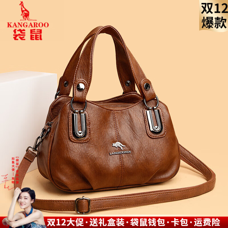 品牌袋鼠中年女包时尚手提包女新款2025真皮包斜挎包大容量妈妈包