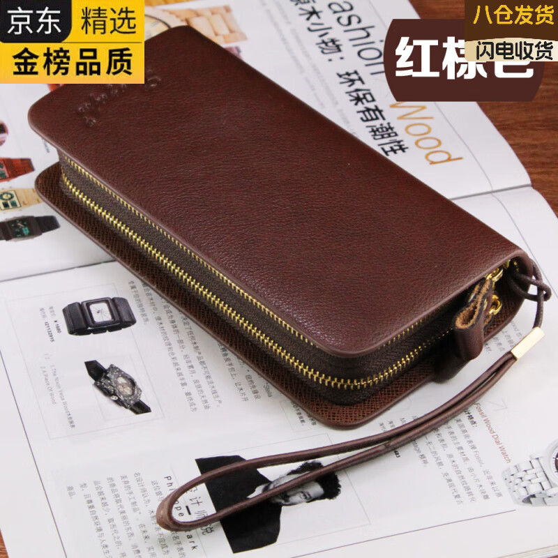 GIOIO日本进口名牌新宗手提包拉炼皮包钱包男士长青手机包手拿包高端时 红棕色